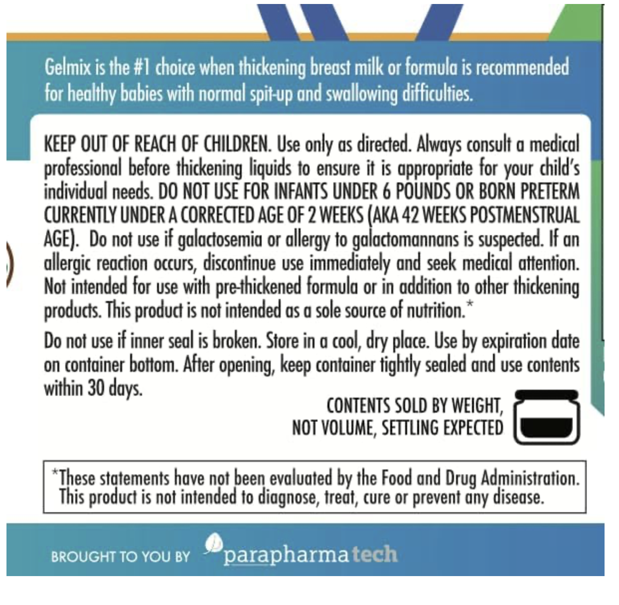 Gelmix thickens breast milk or formula to reduce reflux and improve swallow safety—mixes smoothly, no lumps, no taste change, pediatrician-recommended.